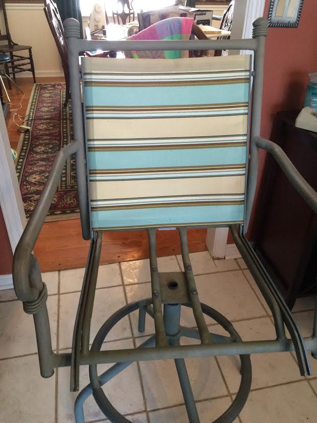 My patio chair frames were in great shape but the material on the back and seat had started to tear. I found some outdoor furniture material at 50% off. I only needed 1 1/2 yards so even with having to buy new thread I only spent $18.98 to redo these 2 patio chairs. It was easy to sew since they were just rectangles. With very little work or expense I now have what looks like 2 brand new patio chairs and I am ready for the Summer so I can sit on my deck!